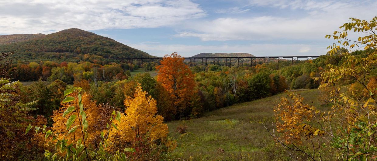 The Moodna Viaduct is a steel railroad trestle spanning Moodna Creek and its valley at the north end of Schunemunk Mountain near the hamlet of Salisbury Mills.